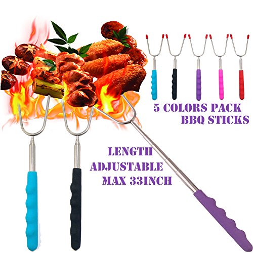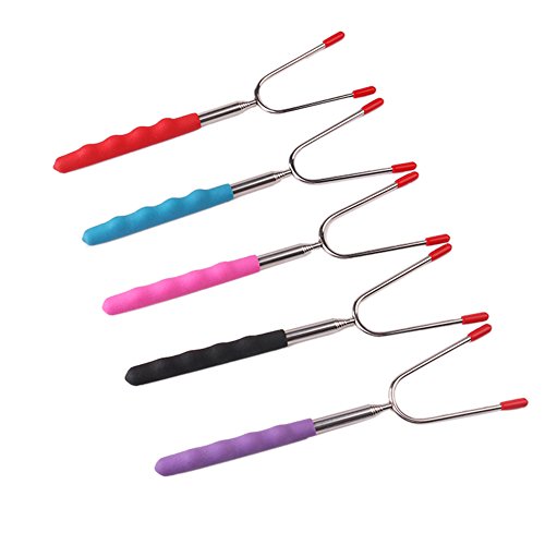 Childhood wonderful memories are born around the fire pit Roasting and Grilling in the backyard with grandfa Or parents POP PAP BBQ Roasting Sticks Set is the Perfect Campfire Cooking Utensils ? 304 Stainless Steel with High-Quality Extra Long Extendable Telescoping handle ? Rubber handle with comfortable finger indents ? Telescoping Handles from 10 inches to 45 inches(25CM-87CM) to keep the children safe when roasting ? Versatile, these skewers can be used to make perfect smores, sausages, wiener's, hotdogs and even vegetables and fruits ? Rubber tips for prongs, to perfect storage and safe handling ? Canvas pouch convenient for camping trips or storing at home. ? Dishwasher safe 0