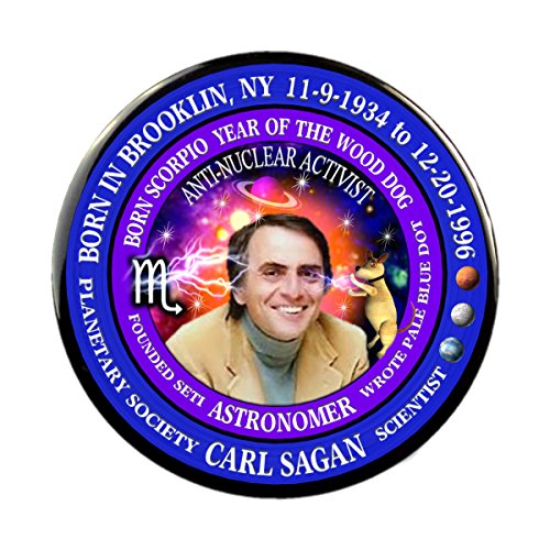 Product DescriptionCarl Sagan 3" Pin , Scientist Astrology Scorpio Zodiac Wood Dog0