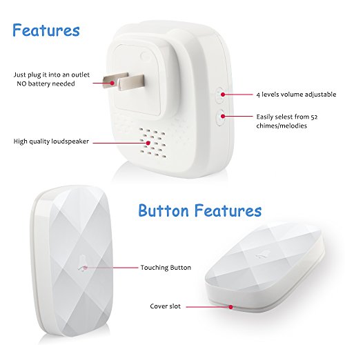52 select musics & 4 adjustable sound volume for the wireless doorbell button