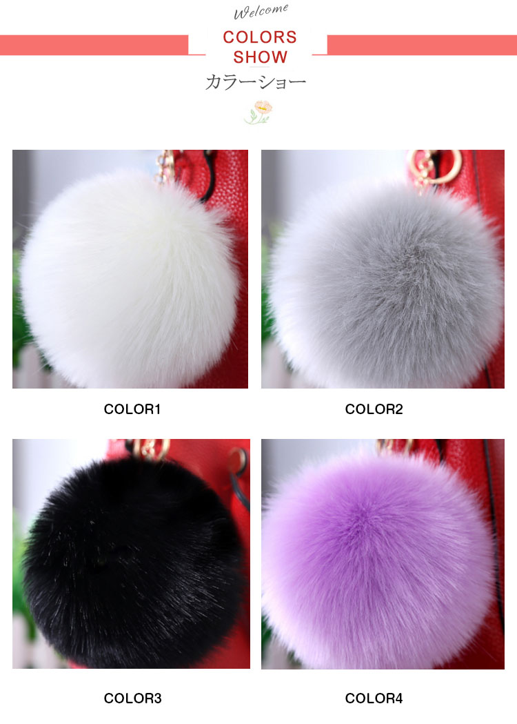 | バッグに華やかさを与える、ファーチャームキーホルダーとして使ってもとてもかわいいです。可愛いカラーバリエーション展開も魅力☆長い毛足が華やかな印象与えるフェイクファーで柔らかく、優しい手触りです。ゴールドの金具仕様でゴージャス感もアップ!!こちらの1点だけでお手持ちのバッグを手軽に可愛く、季節感たっぷりにアレンジできます。 | |