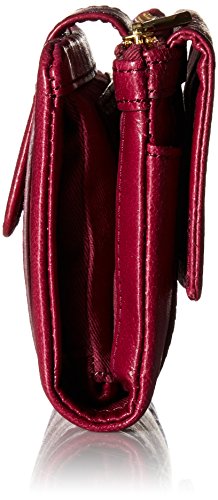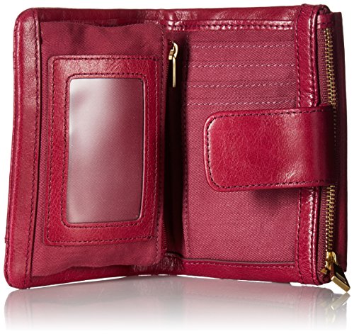 Measurements: 5.38"l x 1.5"w x 4"h; interior features: 2 bill compartments, 12 credit card slots, 1 id window and 1 zipper pocket, under flap: 1 slide pocket; exterior features: 1 top zipper pocket