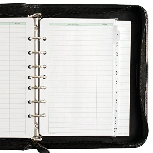 -. Feature : Heavy duty vinyl is embossed with a leather like grain / Includes binder, sample of three calendar formats, tabbed address and phone directory, note pad, business card holder, tabbed monthly dividers, reference pages, zip pouch / 1 Inch 7 ring binder element; tabbed monthly dividers, reference pages, zip pouch / Set of undated tabbed calendar dividers / Desk size is 5.5 x 8.5 Inches