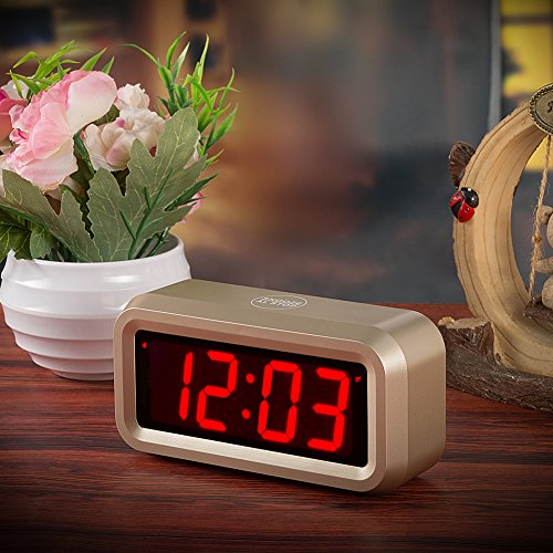 Kwanwa Digital Alarm Clock with LED Display (Gold) Small Home or Portable Design | Battery Powered | Loud, Clear Sounds | Vintage [Updated Version]