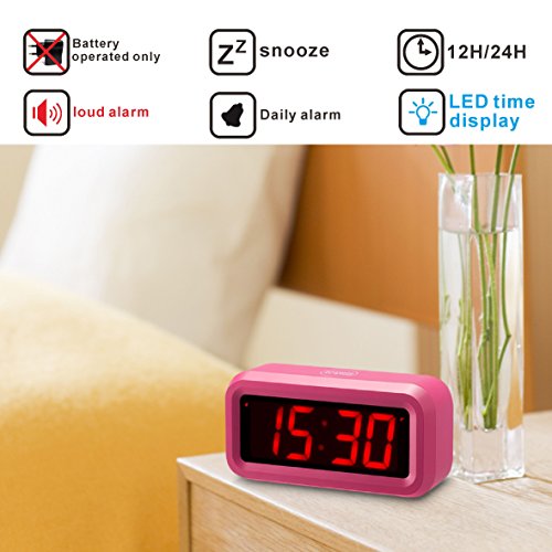 Kwanwa Girls Alarm Clock with Red LED Display Small Home or Portable Design | Battery Powered | Loud, Clear Sounds | Vintage Style
