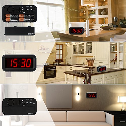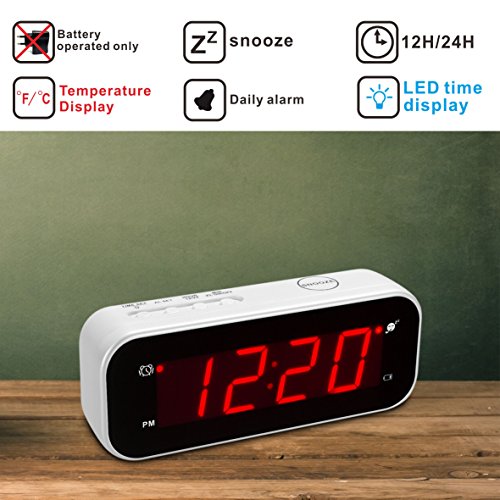 Kwanwa Portable Cordless Battery Operated only Travel Alarm Clock With Temperature and Big 0.9" Red LED Numbers