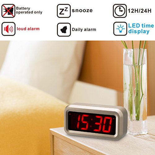 Kwanwa Travel Alarm Clock with LED Display Battery Operated / Powered Only | Small Home or Portable Design | Loud, Clear Sounds | Vintage Style