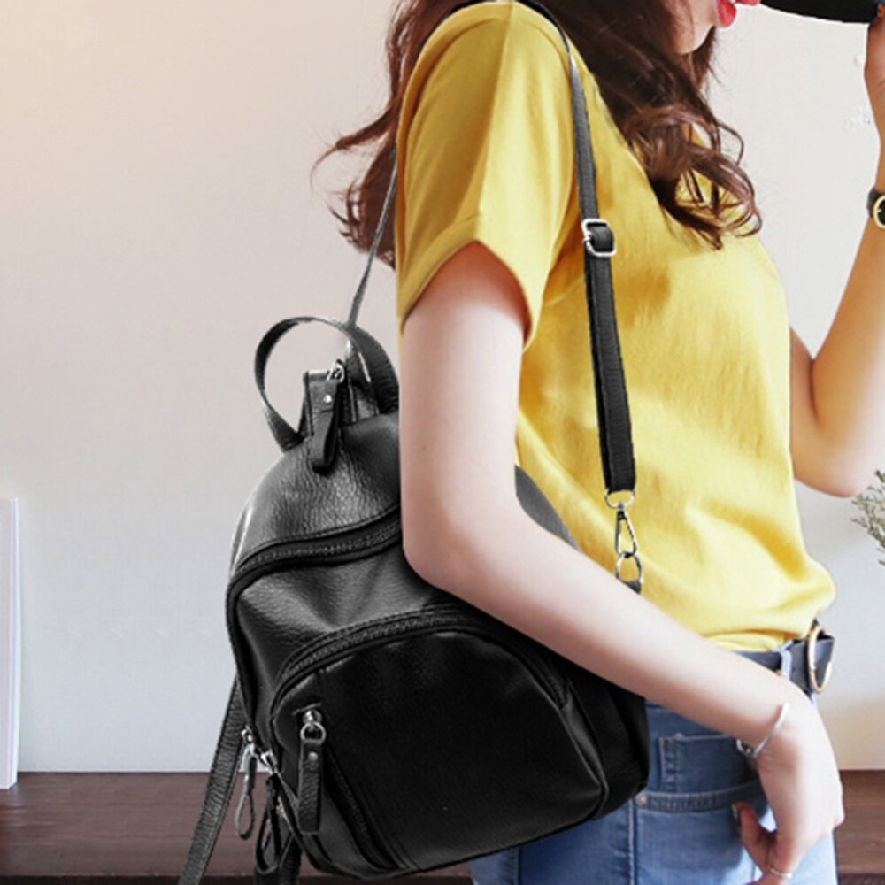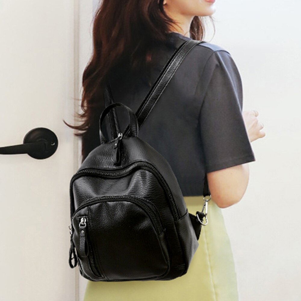 2017 New Claasic Women PU Leather Mini Preppy Chic Backpack Casual School Travel Bag Black
