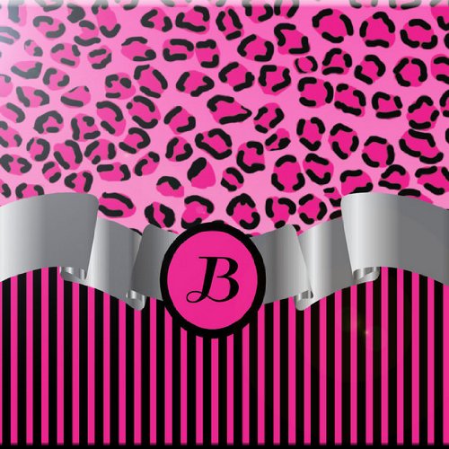 Rikki Knight RK-6intilec-2272 6" X 6" Letter "B" Hot Pink Leopard Print Stripes Monogram Design Ceramic Art Tile