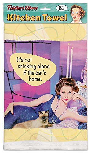 "It's Not Drinking Alone If The Cat's at Home!" 100% Cotton, Eco-friendly Kitchen Dish Towel