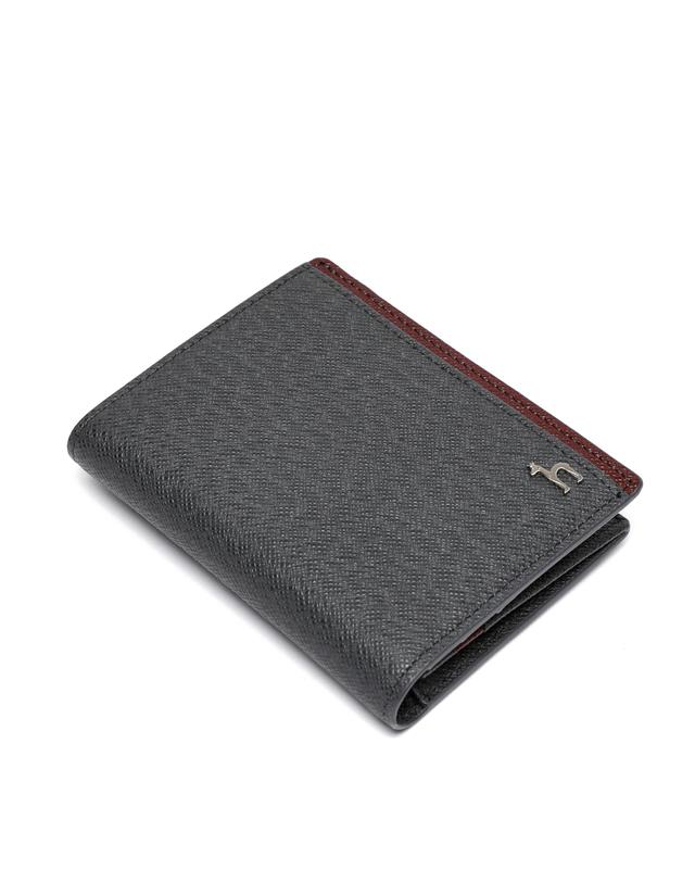그레이와 블랙 컬러의 배색 디자인으로 세련된 외관을 연출한 반지갑입니다.