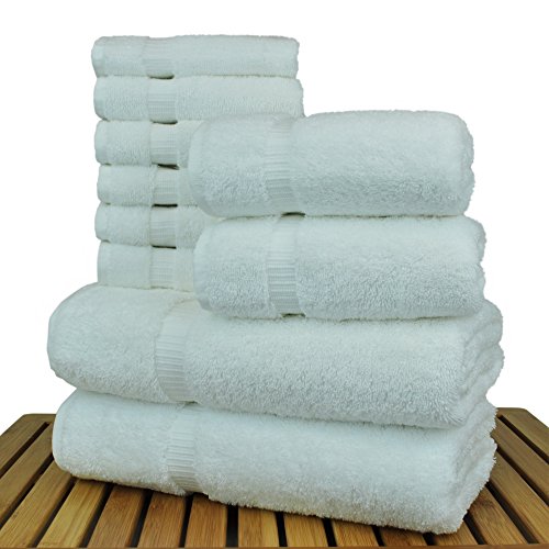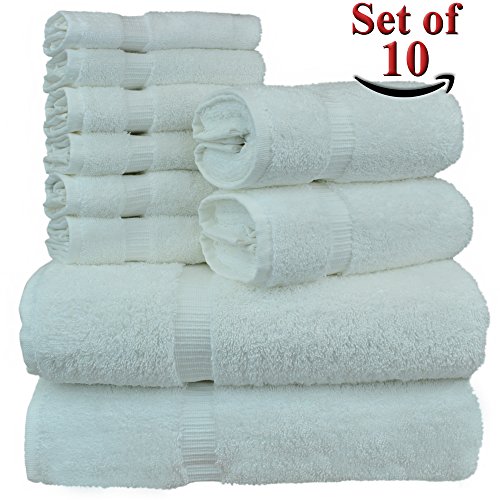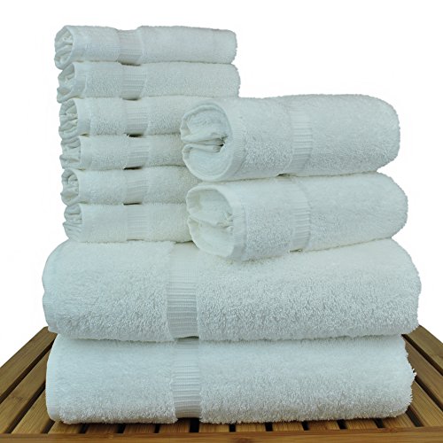Luxury Hotel & Spa Towel 100% Genuine Turkish Cotton Bundle 10 Piece Towel Set, White, 2 Bath Towels 27"X54" , 2 Hand Towels 16"X30" , 6 Wash Cloths 13"x13"