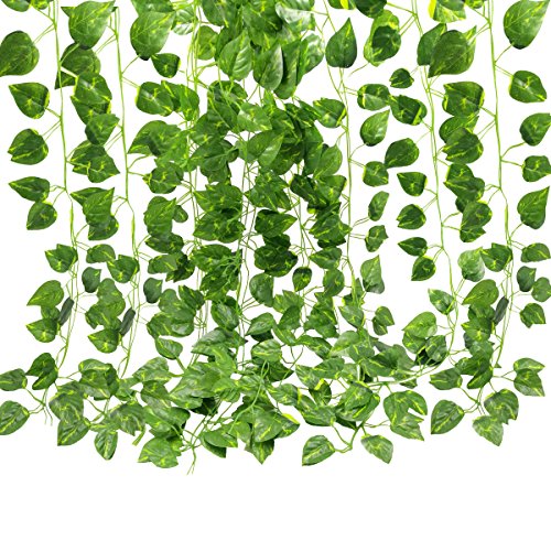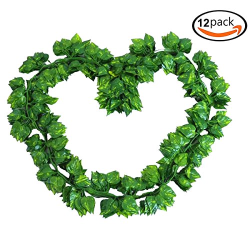 GoFriend 12 Strands(83 Feet) Artificial Ivy Leaves Garland Silk Greenery Fake Foliage Hanging Scindapsus Aureus Vine Plant for Wedding Party Home Garden Wall Decor