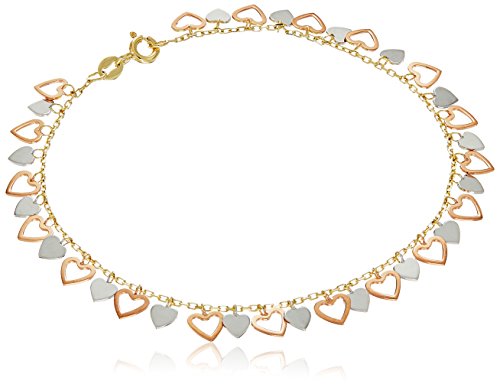 -. Title : 10k White, Yellow and Rose Gold Hearts Charm Bracelet, 7.5"
