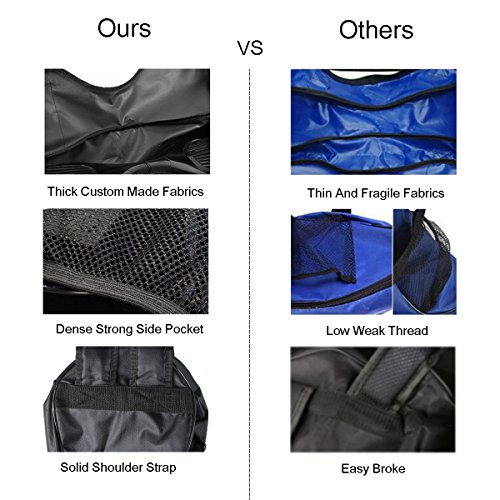 GameXcel ® Self-Balancing Scooter backpack bag is made from strong and durable 1680D oxford material. Strong to carry anywhere you can't really use the board at, and the lining of the backpack is waterproof, it protects your hover self balancing board from all weather conditions. The backpack can not be submerged in water.It has 2 zippers that give maximum access to the carry bag, allowing you to store your hover electric skate board with great ease.