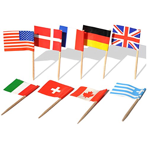- 140 count of paper flags on wood toothpicks; Flag: 1.5"W x 1"H, Pick: 2.5"L.