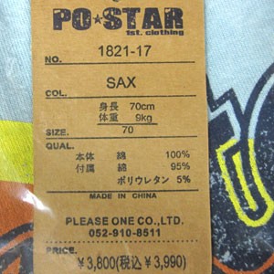 | 【ベビー服・子供服のプリーズワン】 ベビー・キッズからジュニアまで幅広いサイズを取り扱っております。 ポスター、ラスクをはじめ人気のスポーツブランドも取り扱っています。アウトレット 訳あり商品 季節セール 送料無料商品などお得なコーナーや入園入学準備 お祝い プレゼント カジュアル服 インポートなどの子供服が揃っています。 ●全国一律送料540円(税込) ●5,400円(税込)以上お買い上げで送料無料! ●メール便 164円(A4サイズ厚さ2cmまで) 82円(厚さ1cmまで) 【取扱いサイズ】 60cm/70cm/80cm/90cm/95cm/100cm/110cm/120cm/130cm/140cm/150cm/160cm 10cm/11cm/12cm/13cm/14cm/15cm/16cm/17cm/18cm/19cm/20cm/21cm/22cm/23cm XXS/XS/S/M/L/XL US:2T/3T/4/5/6/7/8/10 大人サイズ アダルトサイズも取り扱っています。 |