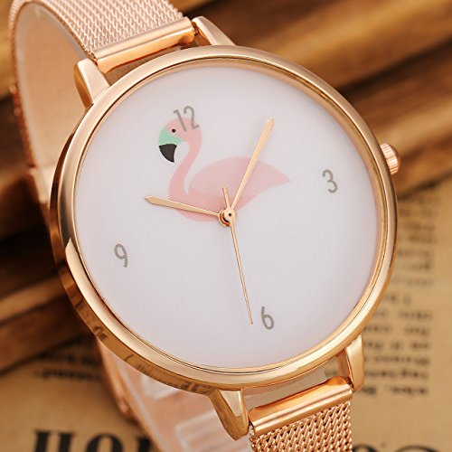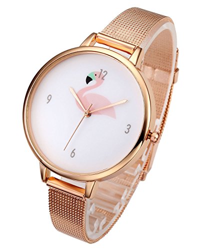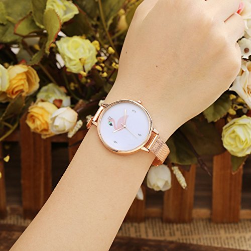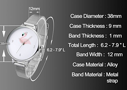 - Beautiful and Cute Pink Flamingos Pattern Design, Fashion lady bracelet watch with Thin Mesh Strap, Wear it make you look more confident, bring you a wonderful wear experience.