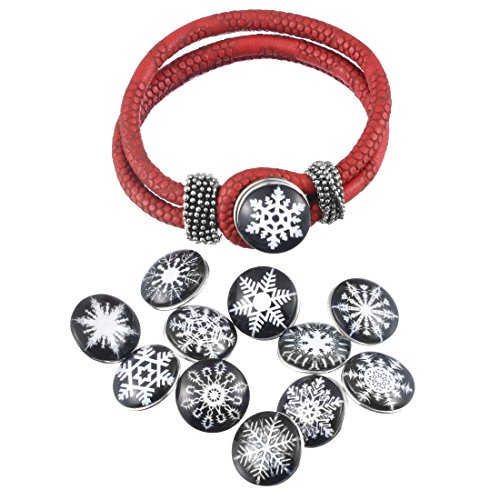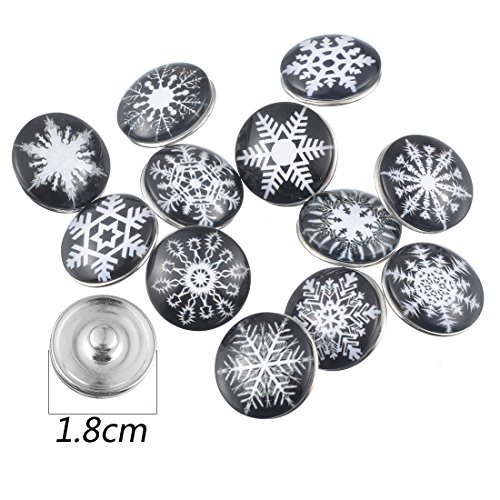 Souarts Solid Mixed Christmas Snawflake Pattern DIY Snap Button Jewelry Charms 18mm Pack of 12pcs