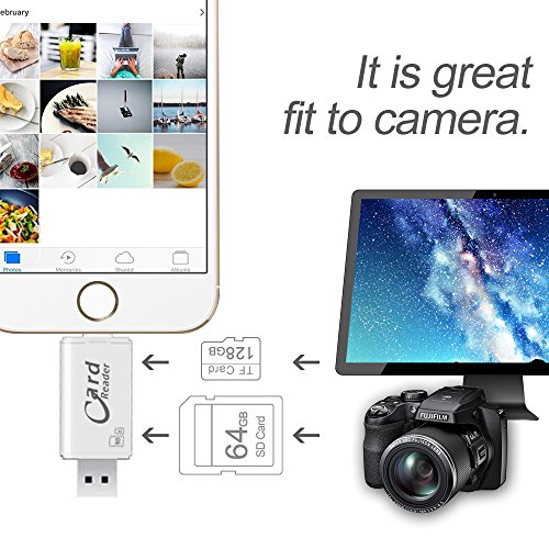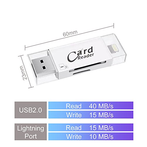 Shawn SD&TF Card Reader with Lightning Micro USB Connector for iPhone, iPad, Android phones, Mac, PC , 3 in 1 Flash Memory Card Reader for TF, SD, Micro SD, Mini SDHC,MS Micro(M2),MS Pro Duo