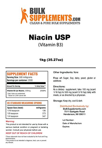 (BulkSupplements)/Vitamins Dietary Supplements/Vitamins/DIRECT FROM USA/Bulksupplements Pure Niacin (Vitamin B3) Powder (1 kilogram)