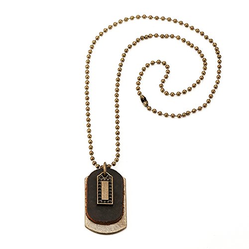 - Title : Vintage D&D Style Men's Leather Pendant Necklace Dog Tag Chain (Gold, Brown)