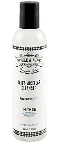 -. Feature : Noble & Vine Micellar Water 3-in-1 Daily Face Cleanser is an advanced facial cleanser that is gentle on oily, combination, and sensitive skin. / This cleanser is unscented and contains dirt-loving Micelles, it gently wipes off with a cotton pad. / This is a thorough skin cleanser! Our Simple Micellar Water 3-in-1 Daily Cleanser removes dirt and impurities, leaving the skin fresh and clean - we have formulated it for makeup removal, too! / Micellar Water 3-in-1 Daily Cleanser contains no artificial dyes or perfumes and no harsh chemicals. BPA and Phthalate free! Clean, hydrate, and remove make-up with no skin irritation! / Micellar Water 3-in-1 Daily Cleanser contains natural moisturizers to hydrate the skin and witch hazel, a natural astringent to help clarify.