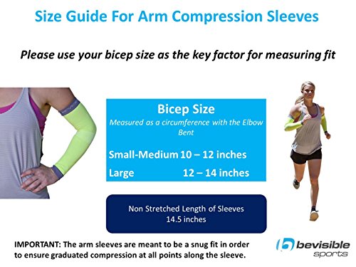 ARM COMPRESSION SLEEVES BeVisible Sports – Best Support For Men Women and Youth - 1 Pair – For Prime Members – (Small/Medium, Green)