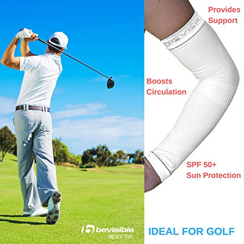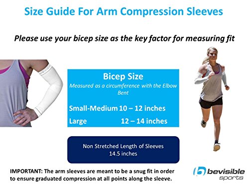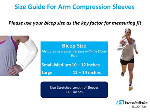 Compression Arm Sleeves - BeVisible Sports - Best Support For Men Women and Youth - 1 Pair - For Prime Members - (White, Large)
