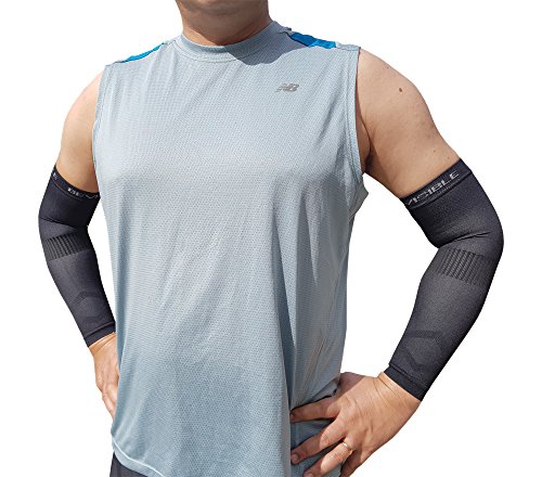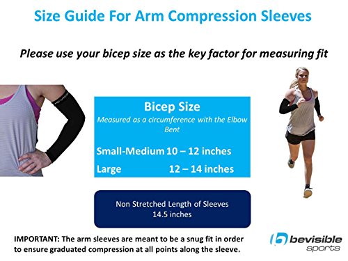 Compression Arm Sleeves - BeVisible Sports - Arm & Elbow Support For Men, Women & Youth - Boosts Circulation, Aids Faster Recovery -With SPF 50+ UV Sun Protection - 1 Pair - (Small/Medium, Black)
