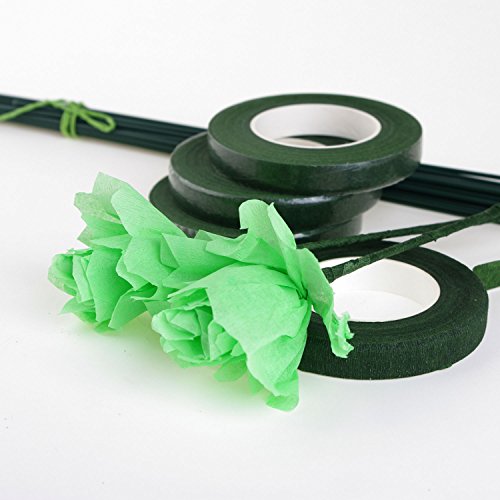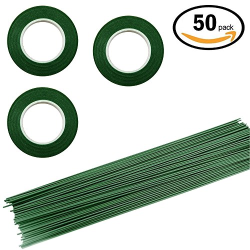 3 Rolls Floriculture Paper Tape ,Floral Tape for Stem Wrap Flower Tape with 50 Pieces 16 Inch Floral Stem Wire,Dark Green