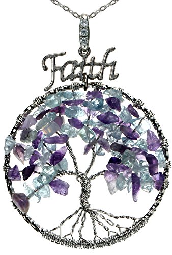 -. Title : Lucky Tree of Life Necklace Faith Charm Best Friend Gemstones Pendant 18" 24" Chain for Gift