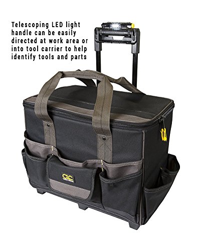 CLC Custom Leathercraft L258 TechGear Roller Tool Bag with Lighted Handle, 17-Inch