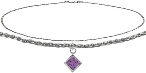 -. Title : 14K White Gold Wheat Anklet with Genuine Amethyst Square Charm