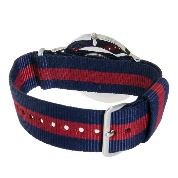 | サイズ | ケースサイズ(直径)40mm、ケース厚さ 6mm | | 仕様 | ステンレス(ケース)、NATOナイロン(ベルト) 日本製クオーツ・ムーブメント、日常生活用強化防水:3気圧(完全防水ではありません)、カラー:オフホワイト(文字盤)、シルバー(ケース)、ネイビー/レッド(ベルト) 1年間 | | 付属品 | 取扱い説明書、保証書、専用ボックス |