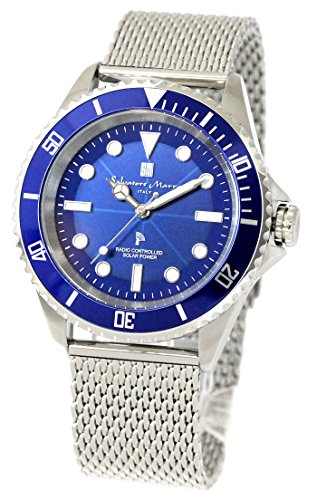 [살바토르메라]Salvatore Marra 손목시계 맨즈 전파 솔라 당점 한정 다이버스 워치 전파 솔라 비지니스 SM16103 메쉬블루 [병행수입품]
