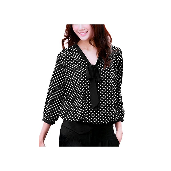 원본상품명: Allegra K (JP) レディス ブラウス シャツ タイボウネック 水玉柄 七分袖 可愛い オフィス 通勤 通
