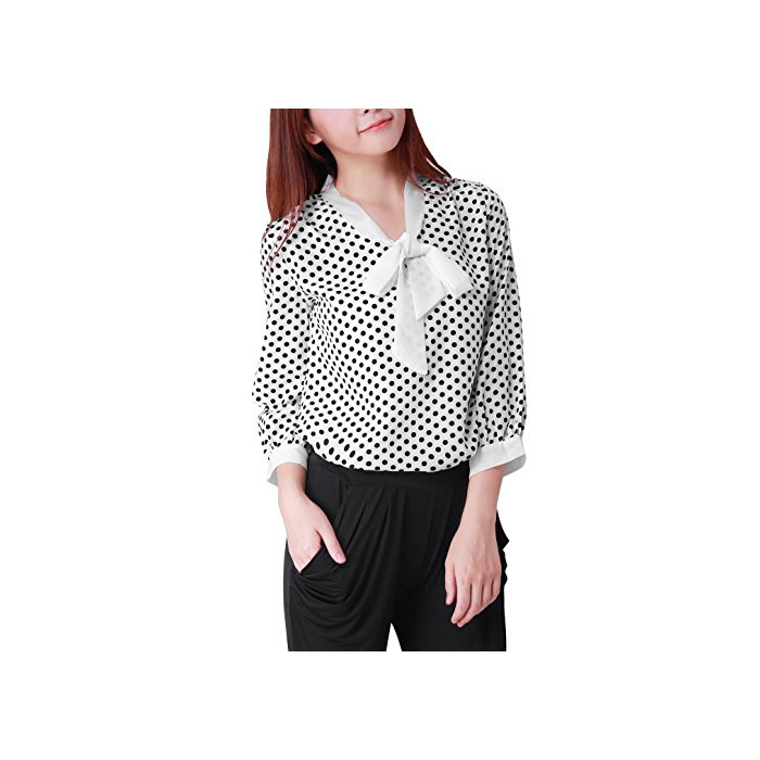 Allegra K (JP) 레이디스 블라우스 셔츠 타이 bow 넥 도트무늬7 분소매 캐주얼 화이트 L (JP 17)