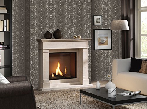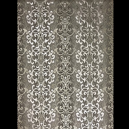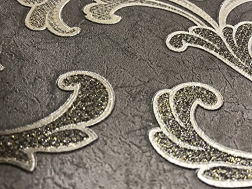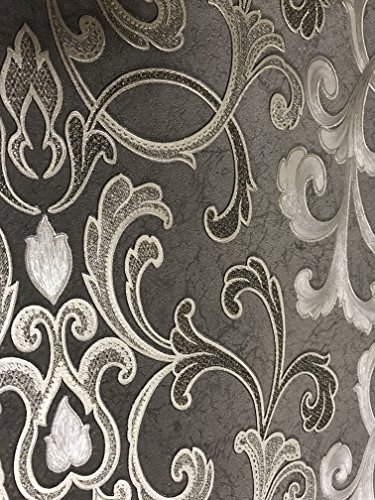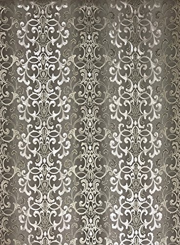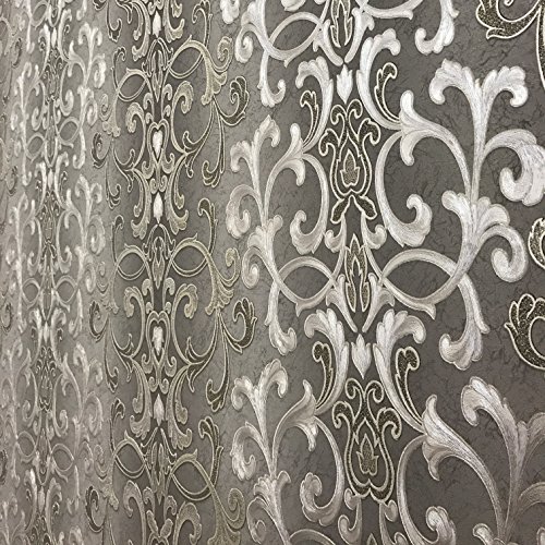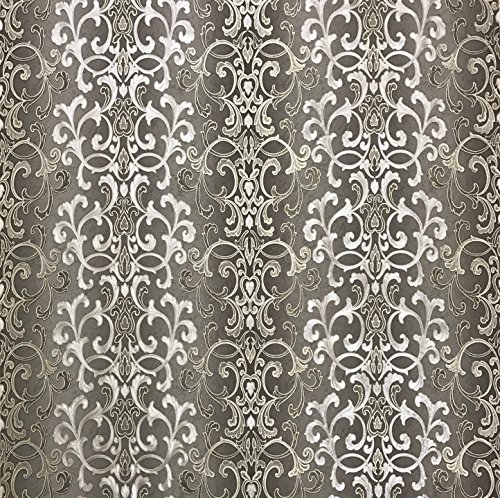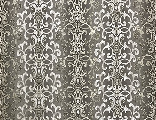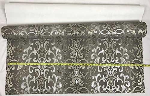-. Title : QUADRUPLE ROLL 113.52sq.ft (4 single rolls size) Slavyanski washable Victorian pattern Vinyl Non-Woven Wallpaper wallcovering gray silver gold textured stripe wall damask glitters metallic 3D living