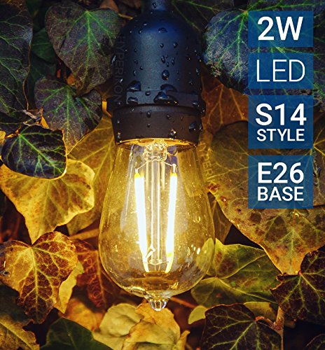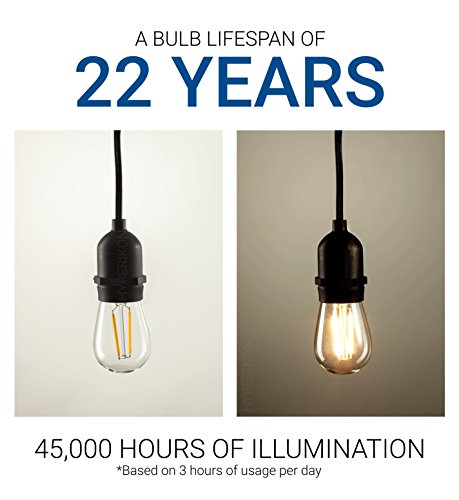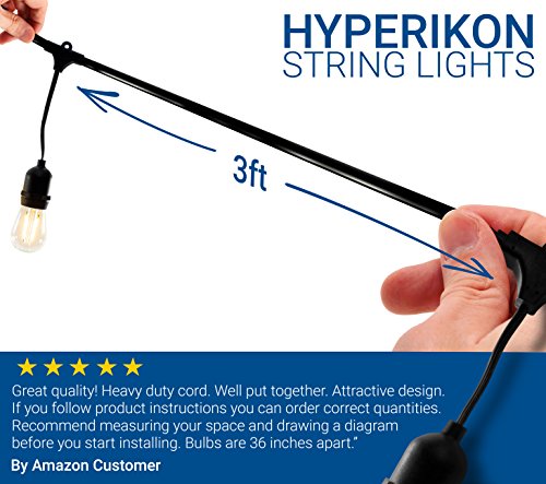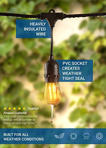 Hyperikon LED Outdoor Commercial String Lights, 48ft with 24 Hanging Sockets, 2W LED S14 LED Bulbs included - Weatherproof Vintage Edison String Lights for Patio, Backyard, Party Wedding decoration