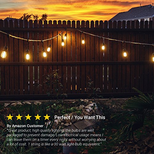 ✔ CONNECT UP TO 2 STRINGS FOR 96FT OF LIGHTING - Total string light length is 48 feet, making it long enough for use in any potential setting. Female socket on opposite end allows for connection of up multiple strings for extra length of beautiful patio string lights.