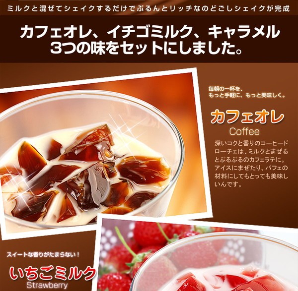 (コーヒー3袋、キャラメル3袋、ストロベリー2袋) |