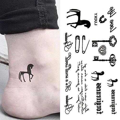 Oottati Small Cute Temporary Tattoo Horse Key Pin Lucky Quote (2 Sheets)
