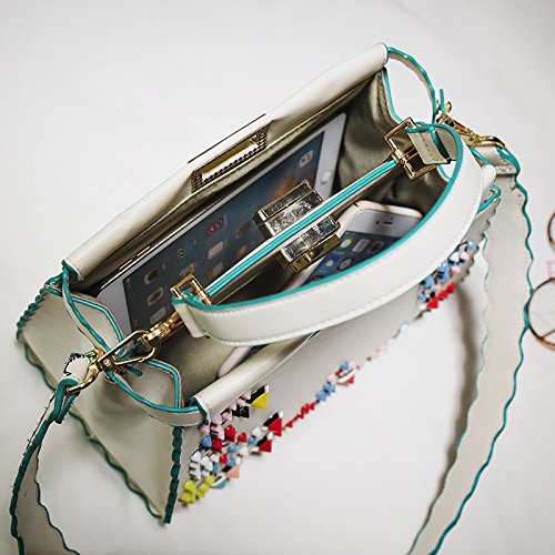 Studio : YILINRUI Publisher : YILINRUI Product Description Made of durable PU leather with good sense of touch, compact structure with the dimension of 27cm*24cm*8cm Beautiful Colorful rivets, which is the fashionable style for the year of 2017, and various types can be at your choice The shoulder bag strap Color ribbon design , it will also give you an impression of uniqueness. Our handbag contains one large main pocket and another small side pocket inside, all can be easily opened . you can have your make up, phones, wallets and keys and so on in there. Our guarantee: refund is available if you are not not satisfied with our cross body bag at 100%. 0