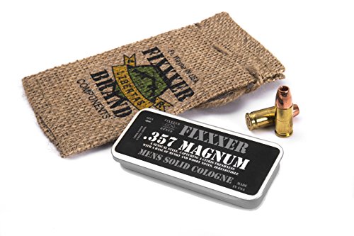 -. Feature : .357 MAGNUM Solid Men's Cologne, by FIXXXER. Pocket Tin & Cool Fixxxer Branded gift bag / Perfect for pocket, bag, or glove-box, you will always have easy access to this amazing scent. Consisting of beeswax, almond oil, jojoba oil and an essential oil blend, we created a timeless, natural men's Cologne. It goes on rather light but will last all day, The beeswax acts as a time release carrier, working to slowly diffuse scent throughout the day, allowing a man to smell his best no matter where he goes. / A sensual style, capturing a citrus freshness with a base of musky and woody notes, irresistible / Each Fixxxer Brand Men's fragrance is designed to evoke a masculine image, and a sense of confidence and purpose. Using a blend of naturally sourced essential oils and premium fragrance ingredients, each cologne offers its own experience. Try all of our Cologne varieties, Dark Sniper, Bullet, Silencer, Huntsman, .38 Special, .357 Magnum, Full Metal Jacket, & Gunpowder / Precision MADE IN THE USA