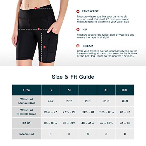 -. Title : Houmous Women's UV Protection 8" Compression Yoga Shorts Fitness Bike Workout Shorts with Side pockets
