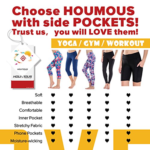 -. Feature : Non see-through, moisture-wicking, breathable and stretchy fabric provides complete coverage.Skin- friendly and soft fabric offers a smooth, low- friction performance / ✅Mini hidden waistband POCKET for keys or cards.Big side POCKETS are available for 4",4.7",5",5.5" Mobile Phone.High-rise, wide waistband for no muffin top and maximum coverage while bending and stretching / ✅Our fabrics are rated UPF 50+ and provide maximum UV sun protection by blocking 98% of UVA + UVB sun rays, wet or dry; similar rating as SPF for sunscreens. Covered areas don't need sunscreen / ✅Four-way stretch material to promote both compression and support.Longer inseam to provide ample coverage as you move from pose to pose and prevent thighs from rubbing / Versatile-Perfect for yoga, exercise, fitness and any type of workout.Choose Houmous shorts with side pockets,trust us, you will LOVE them!