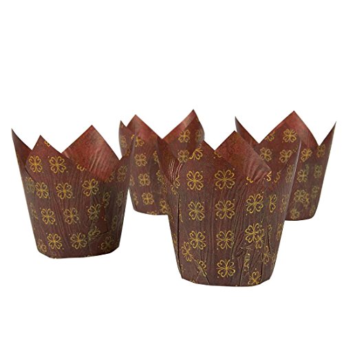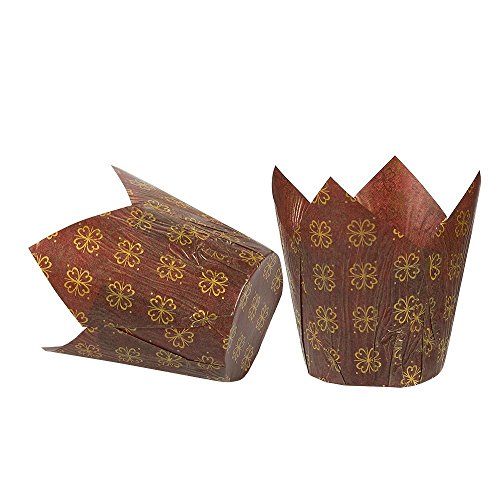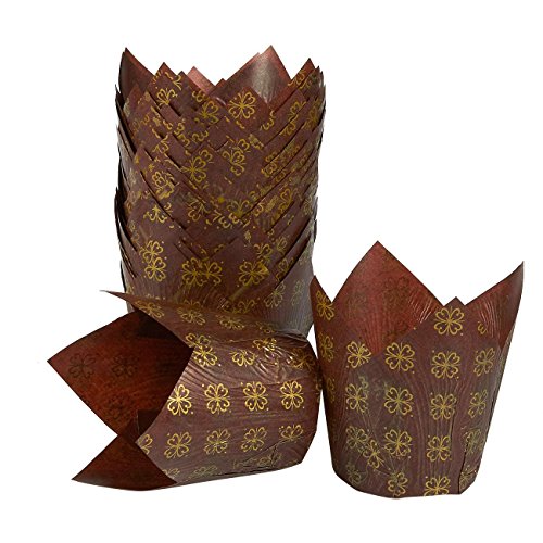 Baking Cups / Tulip Cupcake Liners - 100 Piece Bulk Set - Fancy Paper Cupcake Muffin Liners for Weddings, Birthdays, Baby Showers, Brown and Gold