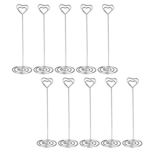 10 Pcs Heart Shape Table Number Holders, Bantoye 8.6 Inches Tall Place Card Holders Swirl Stands Picture Photo Note Memo Clip with Spiral Base Suitable for Bar, Wedding, Party, Gatherings