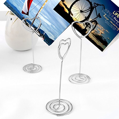 - Lovely & Delicate Design: Desktop Stands are designed with heart-shaped holder and spiral base, the shiny silver color and beautiful shape make them as good choice tabletop decorations. These desktop card holders can be reused for many times at any occassion, so you needn't worry about that they will be uneconomical.