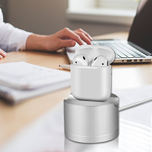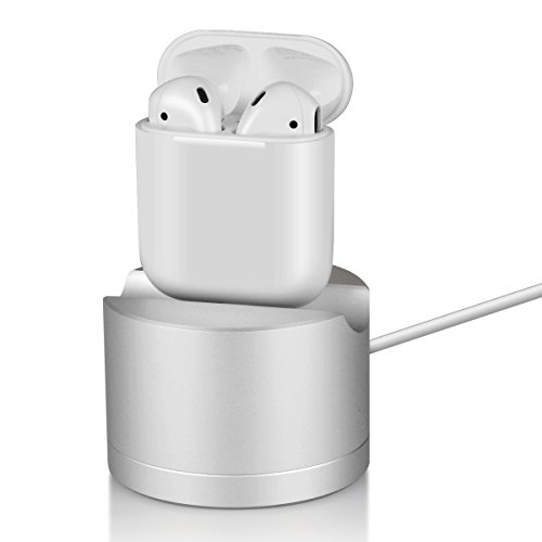 Upow AirPods Stand Aluminum Charging Station Dock for iPhone Magic Mouse and Siri Remote (Silver)